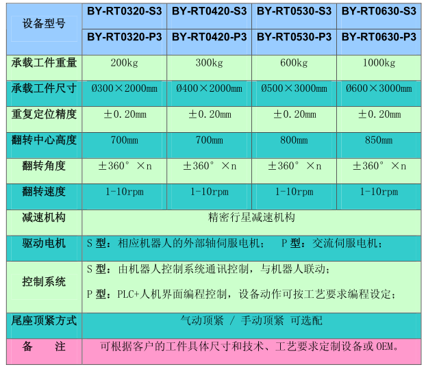 BY-RT XXXX-S(P)3系列 焊接機器人外部軸-- 頭尾架式自動(dòng)翻轉變位機